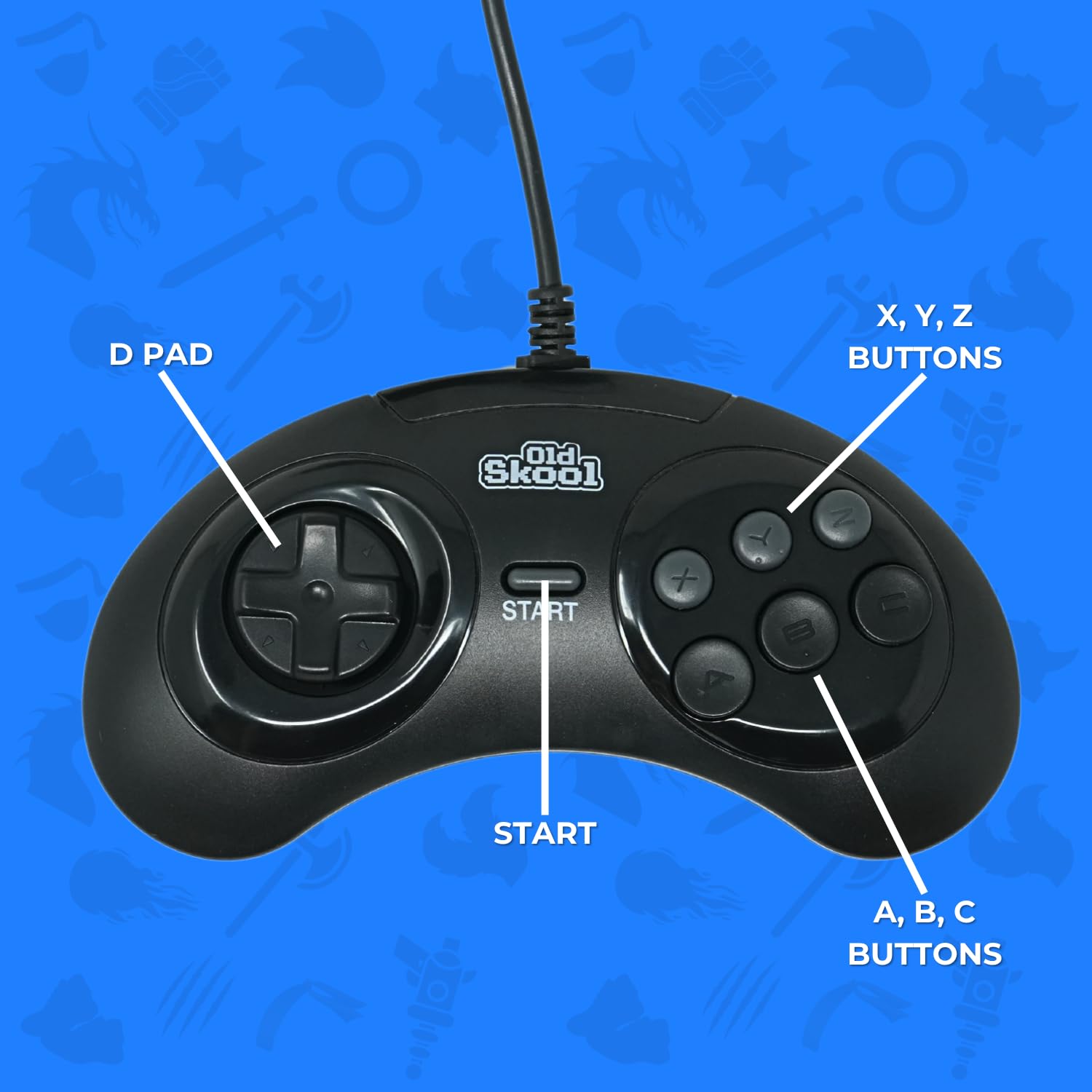 Old Skool USB Controller 6-Button Arcade Pad Compatible with Sega Genesis Mini, PS3, PC, Mac, Steam, Nintendo Switch - USB Port (Black)